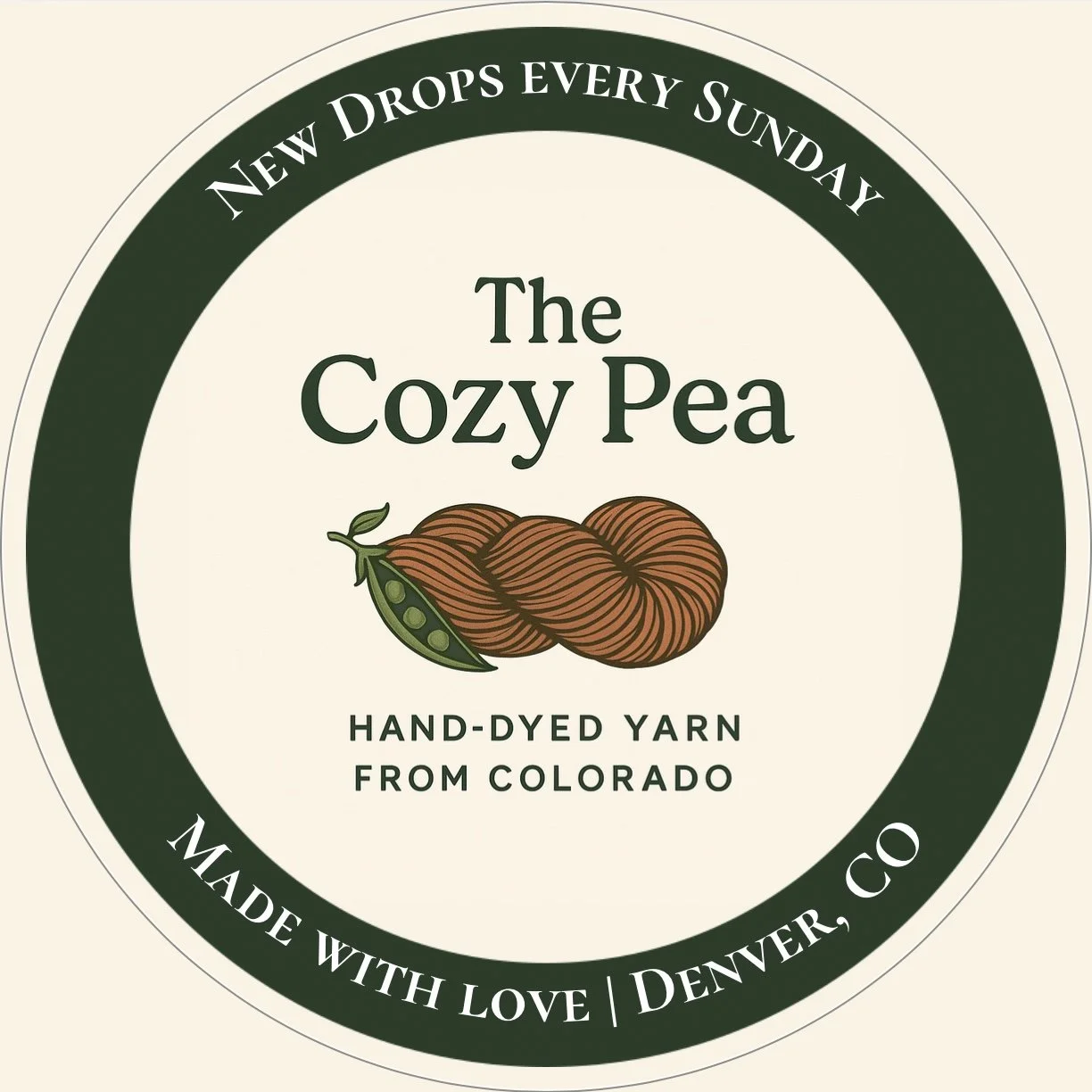 Image 1 of 2 Image 2 of 2 STICKER - Cozy Pea Classic Dark Green $4.00 3.5 inches Add To Cart Added! 3.5 inches